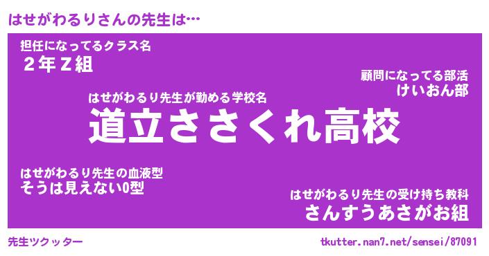 | ポケモン風あだ名 | 『ハセチュウ』『ハセガダネ』 |