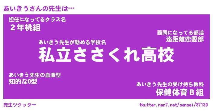 | 意味不明あだ名 | 『ペロリンあいきう』『永久保存あいきう』 |