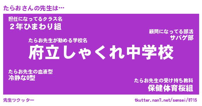 | 意味不明あだ名 | 『ペロリンたらお』『たらおフォーエバー』 |