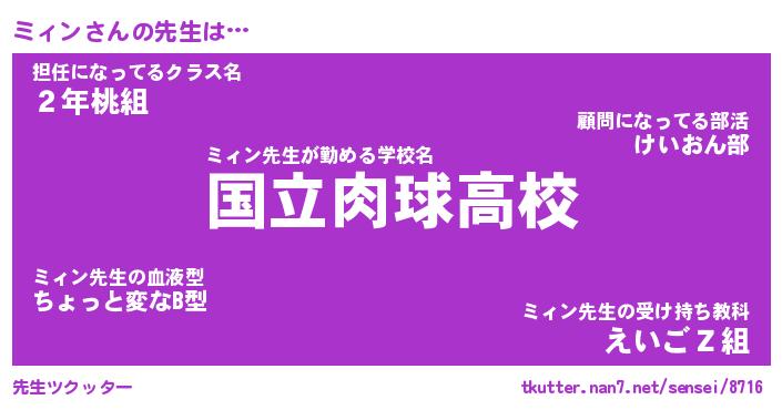 | 欧米人風あだ名 | 『マイケルミィン』『ミィンクリステル』 |