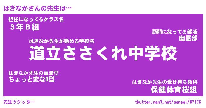 | 意味不明あだ名 | 『ペロリンはぎなか』『永久保存はぎなか』 |