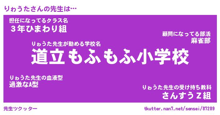 | 意味不明あだ名 | 『ペロリンりゎうた』『永久保存りゎうた』 |