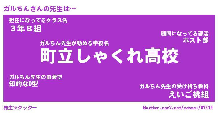 | 意味不明あだ名 | 『ペロリンガルちん』『永久保存ガルちん』 |