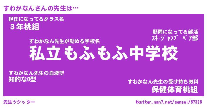| ヘコむあだ名 | 『すわにゅー』『酢こんぶ』 |