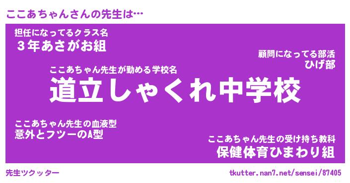 | 伝説のあだ名 | 『不死鳥のスナイパーここあちゃん』 |