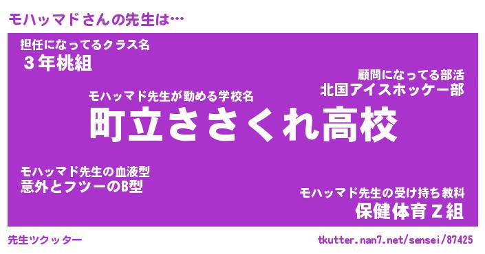 | 欧米人風あだ名 | 『マイケルモハッマド』 |