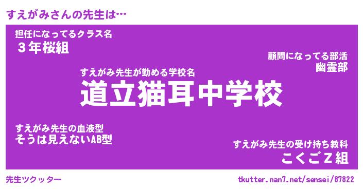 | 意味不明あだ名 | 『ペロリンすえがみ』『永久保存すえがみ』 |