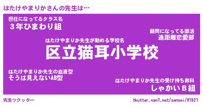 | ヘコむあだ名 | 『はたにー』『つくし』『はたを』 |