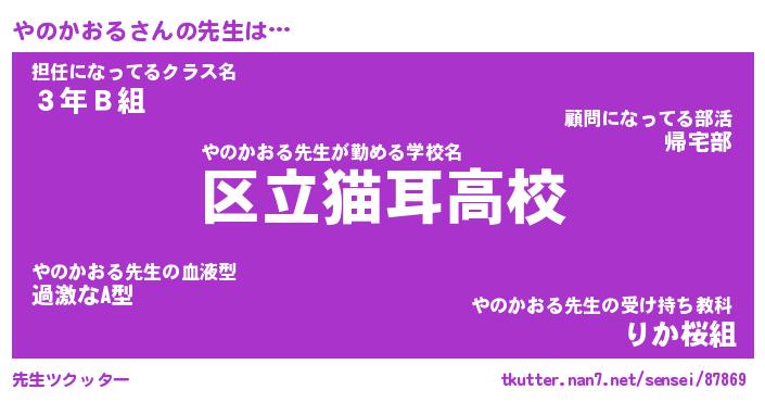 | ファンタジー風あだ名 | 『ヤノフェル』『エターナルヤノカオルー』 |