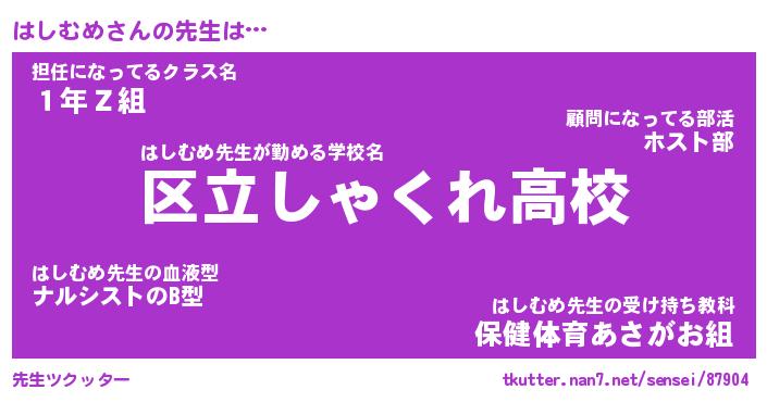 | 意味不明あだ名 | 『ペロリンはしむめ』『永久保存はしむめ』 |