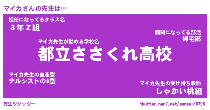 | ヒーロー風カッコイイあだ名 | 『スーパーマイカ』『ウルトラマイカマン』 |