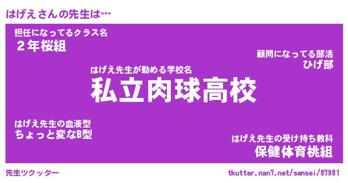 | 意味不明あだ名 | 『ペロリンはげえ』『はげえフォーエバー』 |