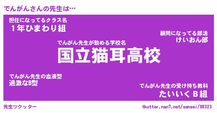 | 意味不明あだ名 | 『ペロリンでんがん』『永久保存でんがん』 |