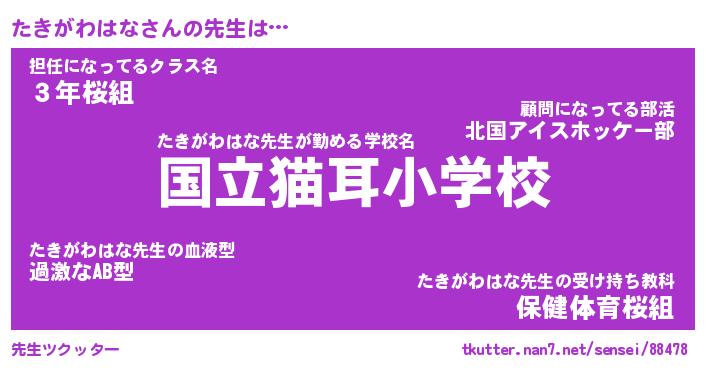 | 恥ずかしいあだ名 | 『プリティーたきがわはな』『たきっちょ』 |