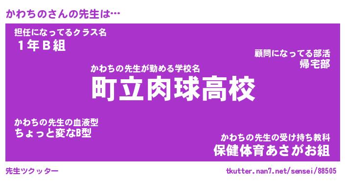 | 意味不明あだ名 | 『ペロリンかわちの』『永久保存かわちの』 |