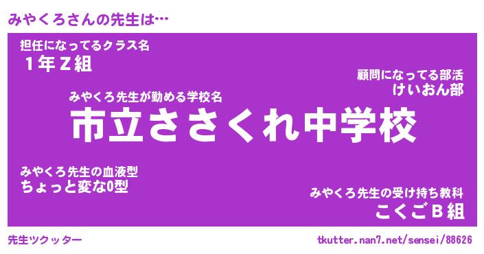 | ヒーロー風カッコイイあだ名 | 『スーパーミヤクロ』『暗黒騎士ミヤ』 |