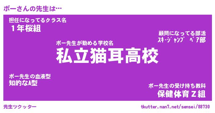 | 2回繰り返すあだ名 | 『ボーボー』『ボボーー』『ぬめぬめ』 |