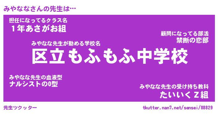 | ヘコむあだ名 | 『みやにゅー』『つくし』『みやを』 |