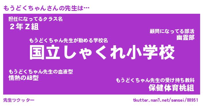 | 胡散臭い通販商品みたいなあだ名 | 『必ず成功する霊験あらたかなお札…その名も「もうどくちゃん」』 |