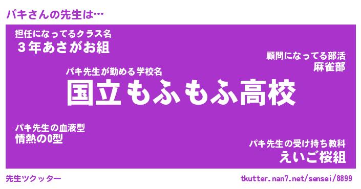 | 男性向けラノベタイトル風あだ名 | 『パキの憂鬱』『ノーゲーム・ノーパキ』 |