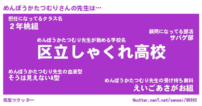 | ヘコむあだ名 | 『めんっふぃ~』『なまこ酢』 |