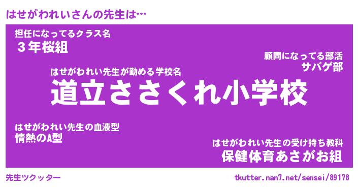 | ヘコむあだ名 | 『はせもー』『つくし』『はせっ子』 |