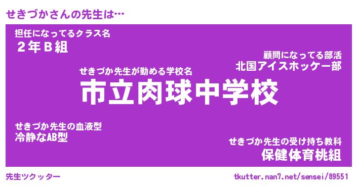 | ヘコむあだ名 | 『せきふぇ~』『なまこ酢』 |