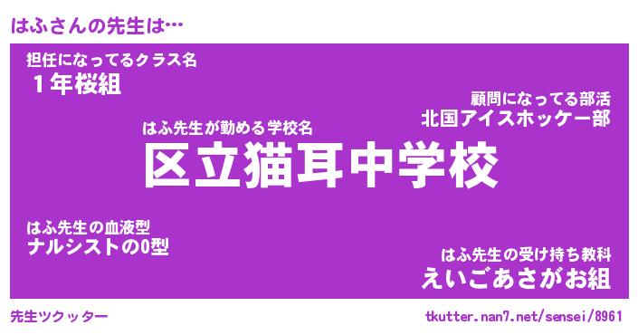 | ポケモン風あだ名 | 『ハフチュウ』『ハフダネ』『ヒハフ』 |