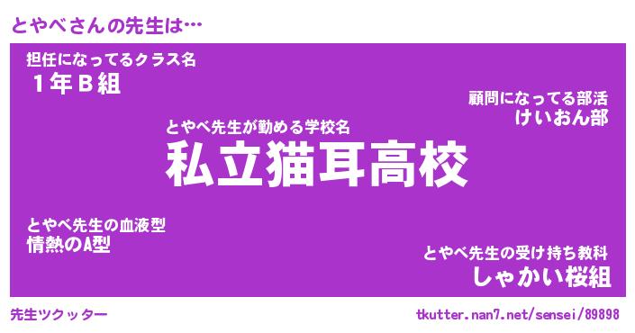 | ファンタジー風あだ名 | 『トヤフェル』『エターナルトヤベー』 |