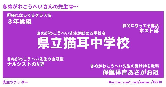 | 肩書あだ名 | 『きぬがわこうへい社長』 |