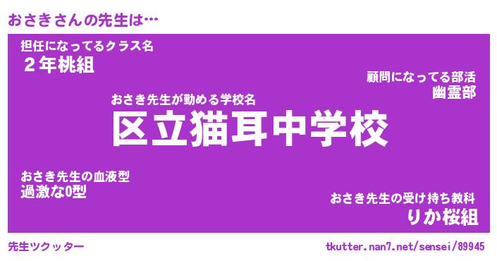 | ポケモン風あだ名 | 『オサチュウ』『オサキダネ』 |