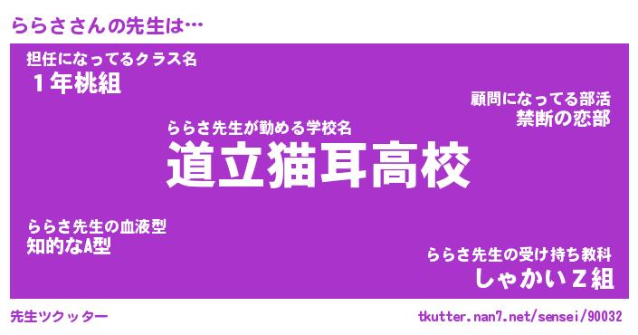 | 肩書あだ名 | 『ららさ社長』『ららさ総理大臣』 |
