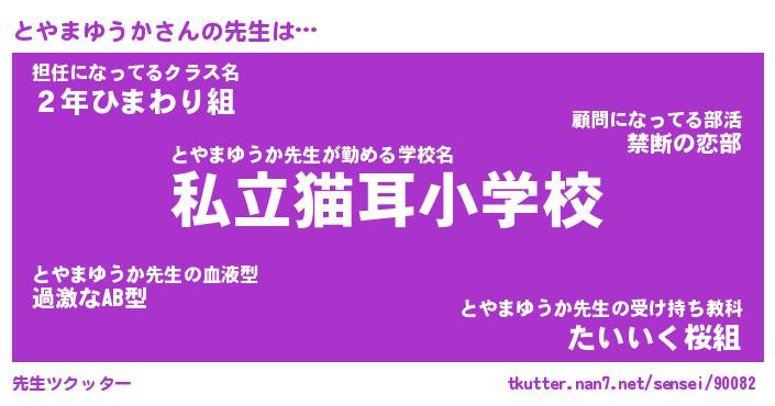 | ヒーロー風カッコイイあだ名 | 『スーパートヤマユウカ』『銀牙騎士トヤ』 |