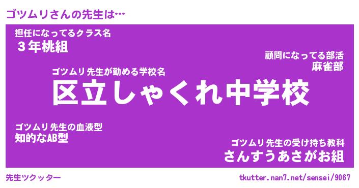 | 意味不明あだ名 | 『ペロリンゴツムリ』『永久保存ゴツムリ』 |