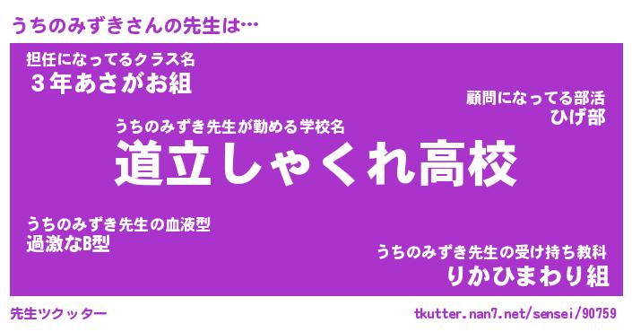 | 伝説のあだ名 | 『不死鳥のスナイパーうちのみずき』 |