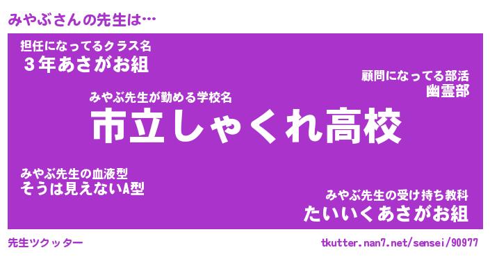 | 意味不明あだ名 | 『ペロリンみやぶ』『みやぶフォーエバー』 |