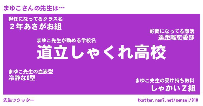 | 意味不明あだ名 | 『ペロリンまゆこ』『まゆこフォーエバー』 |