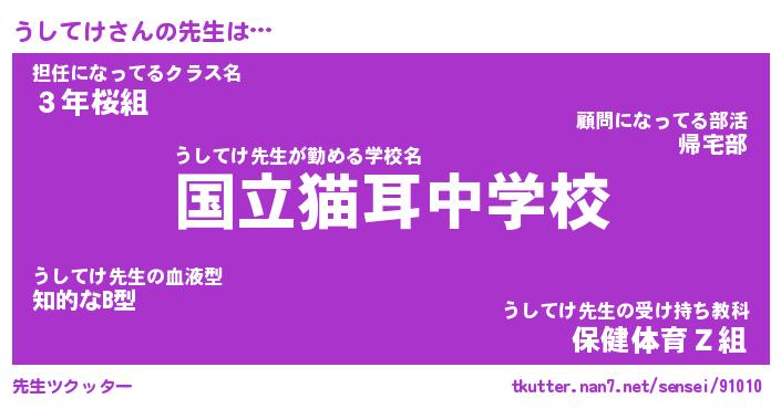 | 意味不明あだ名 | 『ペロリンうしてけ』『永久保存うしてけ』 |