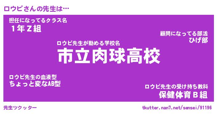 | ヒーロー風カッコイイあだ名 | 『スーパーロウピ』『ウルトラロウピマン』 |