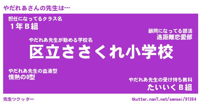 | 意味不明あだ名 | 『ペロリンやだれあ』『永久保存やだれあ』 |