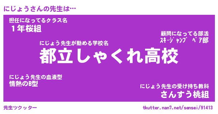 | ヒーロー風カッコイイあだ名 | 『スーパーニジョウ』『魔戒騎士ニジ』 |