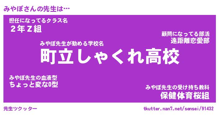 | ファンタジー風あだ名 | 『ミヤフェル』『エターナルミヤポー』 |