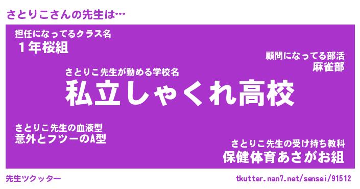 | 伝説のあだ名 | 『伝説のスナイパーさとりこ』 |