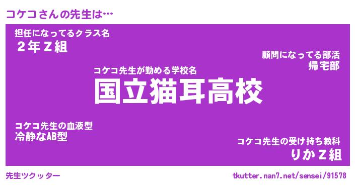 | ヘコむあだ名 | 『コケにー』『なまこ酢』『コケを』 |