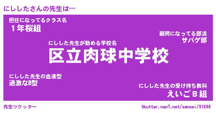 | ポケモン風あだ名 | 『ニシチュウ』『ニシシダネ』 |