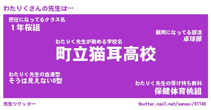 | ファンタジー風あだ名 | 『ワタフェル』『エターナルワタリクー』 |