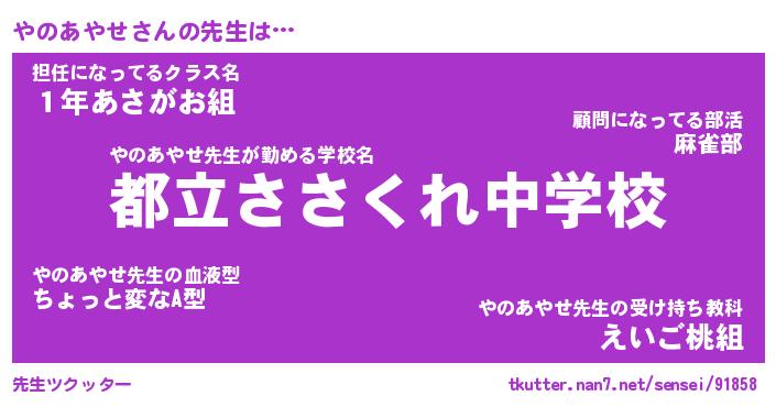 | 伝説のあだ名 | 『不死鳥のスナイパーやのあやせ』 |