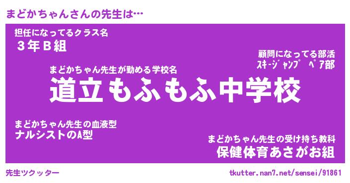 | 恥ずかしいあだ名 | 『プリティーまどかちゃん』『まどっちょ』 |