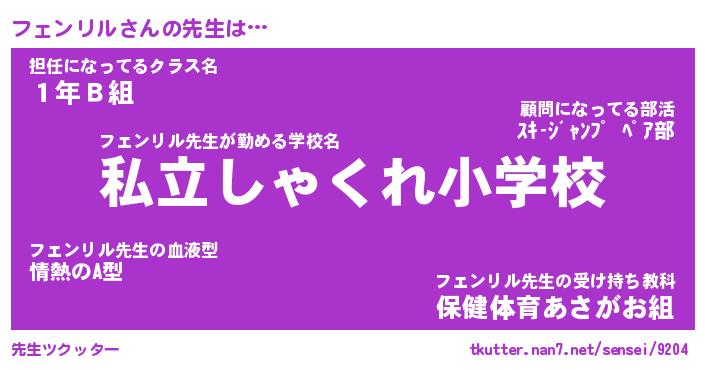 | ファンタジー風あだ名 | 『フェフェル』『エターナルフェンリルー』 |