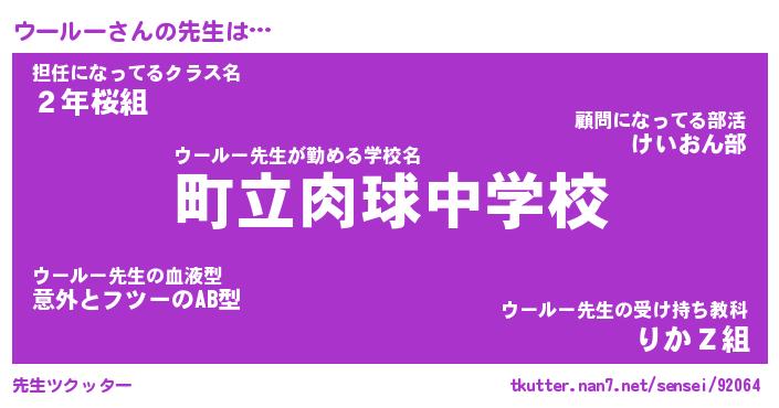 | ヘコむあだ名 | 『ウーふぇ~』『豆乳』『ウーを』 |